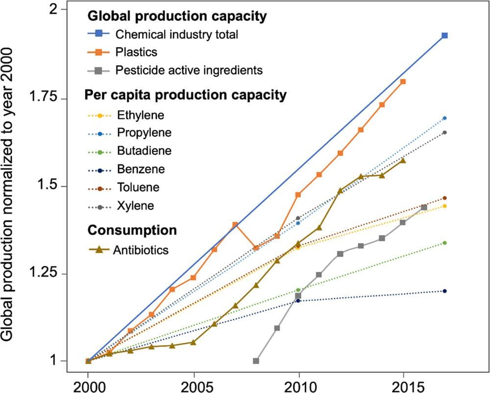 Figure 1: Global production capacity for a number of groups of novel entities