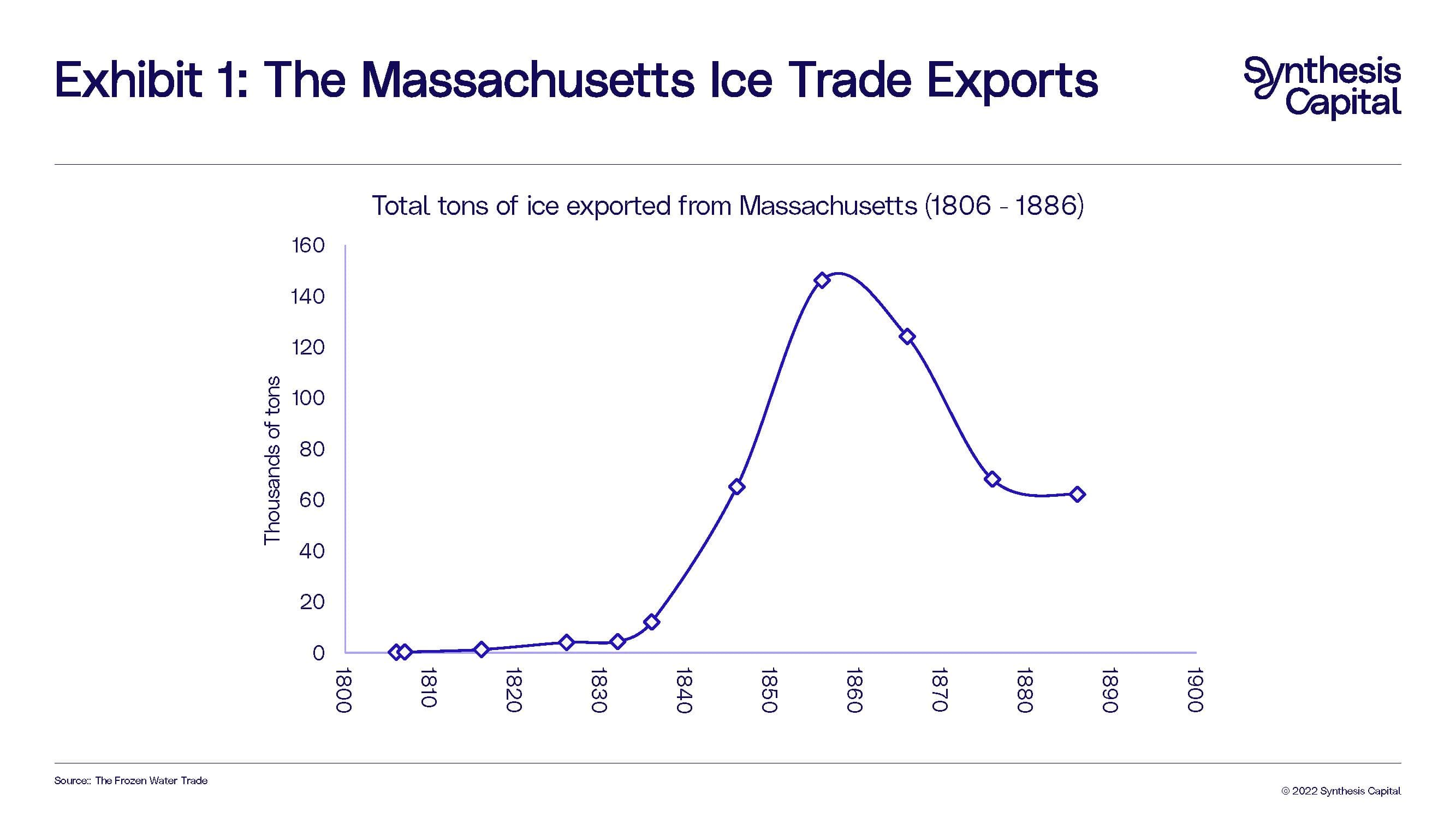 Demand and investment in “artificial” ice grew through the late 1800s – accelerated by supply and demand issues in the incumbent natural ice industry.